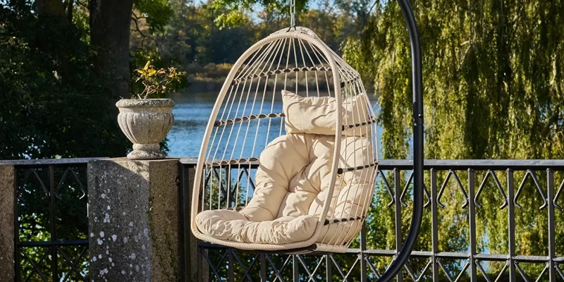 Hängstol, stålstativ, fällbar sits, inkl. kuddar, beige/grå/svart 195x117x107 cm.