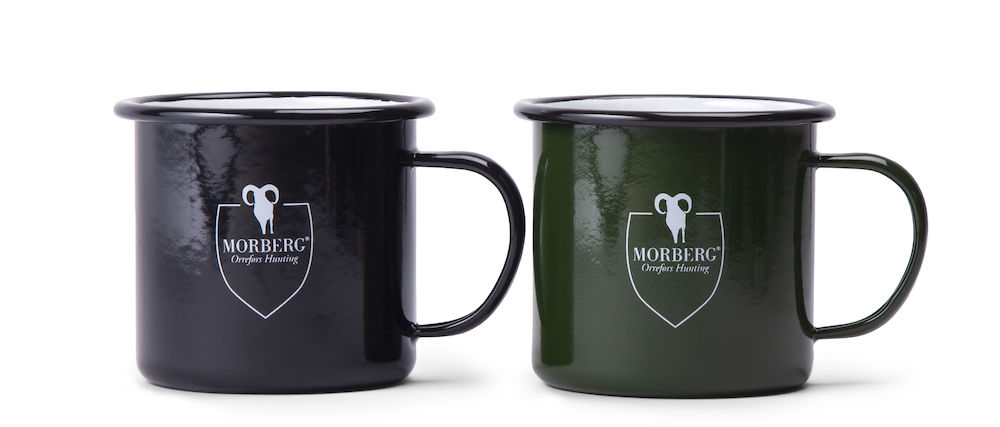 Enameled metal mug - Morbergbyorreforshunting Enamelled metal mug with handle. Hot drinks taste delicious outdoors or indoors. The mug is light and easy to clean. A great gift and perfect for the forest tour. Color: green 65, black 99. Size: 45 cl.